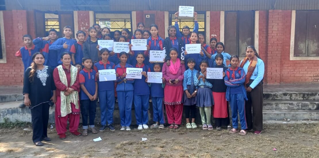 In collaboration with Dwrf Nepal and with support from AEIN – Aide à l’Enfance de l’Inde et du Népal, CWAD provided school educational materials to inspire and support the students in their educational journey. During the program, Social Mobilizer Rupa and Women Group Members delivered an engaging session, highlighting the significance of the 16 Days campaign and encouraging students to stand against gender-based violence.