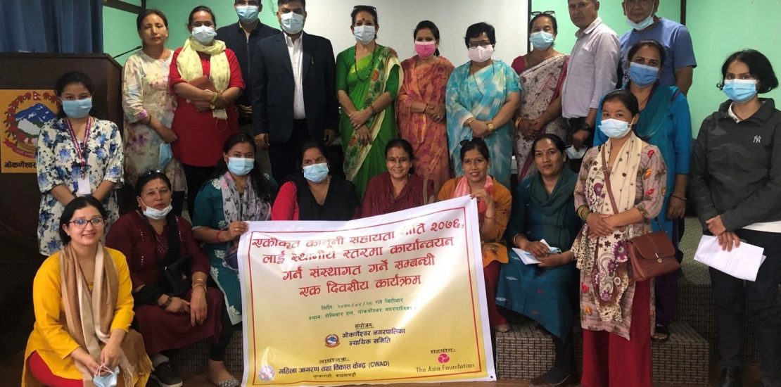 CWAD in coordination with Judicial Committee of Gokarneshwor Municipality, organized a One Day Program on 12th August, 2021 (Shrawan 28th, 2078). Judicial Committee Members, Mediation Committee Members, Ward Members, Executive Members, Paralegals, as well as Legal, Finance, Women and administrative officials of Gokarneshwor Municipality shown their active participation.