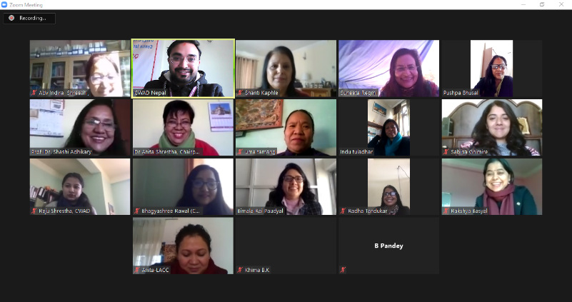 Consultant- Advocate Indu Tuladhar started the Meeting with an overview of his work, Review Report and “Teen Mahale” on Legal Aid Act ensuring easy access to justice to poor, marginalized and disadvantaged groups.