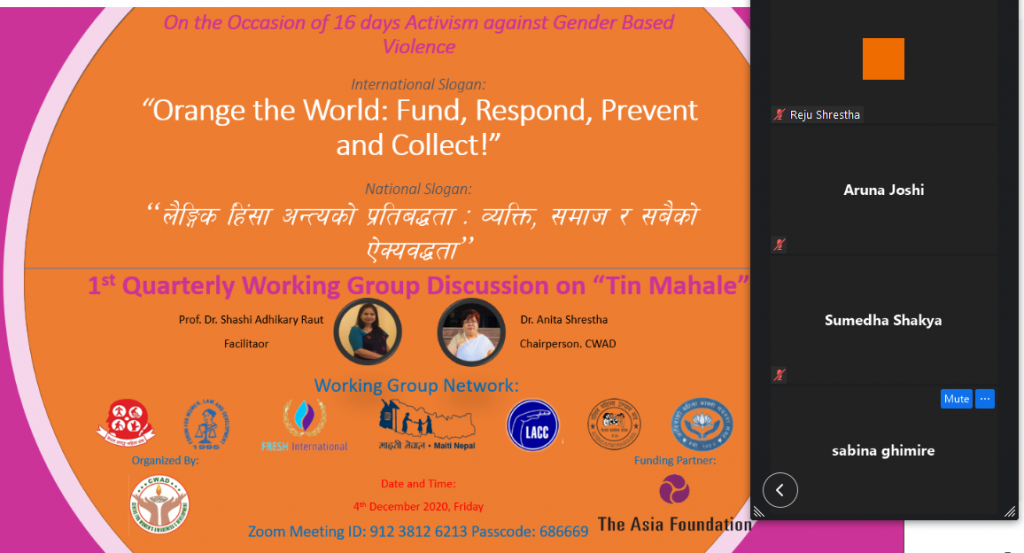 All these input or suggestion as well as the recording of the Meeting and Dialogue was then used by our consultant for the incorporation and finalization of the Review Report and “Teen Mahale”. As this has a viewpoint from people from various background and society/community to help revise on gender perspective for ensuring access to justice of poor, marginalized and disadvantage group.
