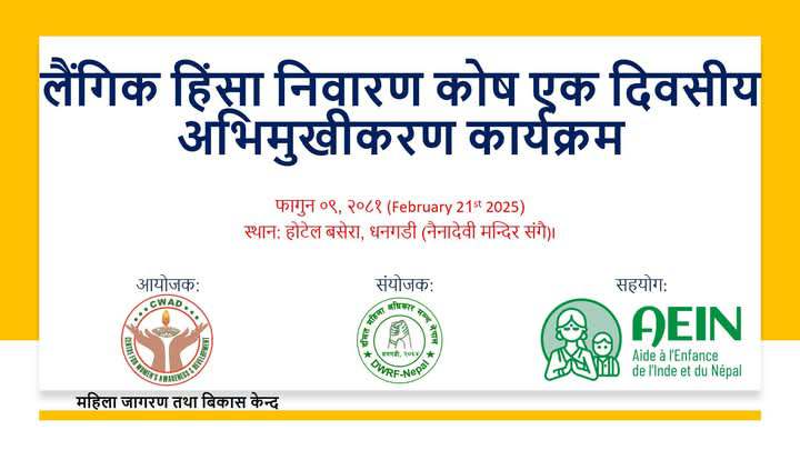 The Centre for Women’s Awareness and Development (CWAD), in coordination with the Dalit Women Rights Forum (DWRF Nepal) and with the support of AEIN, successfully conducted an Orientation on GBV Elimination Fund Regulation and Policies at Basera Hotel, Dhangadhi. The event gathered key representatives from Dhangadhi Sub-Metropolitan City and Godawari Municipality, including Deputy Mayors, Chief Administrative Officers, Judicial Committee members, Department Heads, Ward Chairs, Ward Members, Ward Secretaries, municipal staff, and media personnel. The orientation focused on: Legal provisions and policies on GBV elimination. Implementation of GBV response programs at the municipal level. Fund allocation for legal aid, medical support, and survivor rehabilitation. Strengthening advocacy and survivor assistance programs through local governance. Ensuring financial and social security for survivors. Utilizing international instruments to enhance local advocacy and support mechanisms. The session was enriched by the insights of Prof. Dr. Shashi Adhikary and Dr. Anita Shrestha, whose expertise made the program highly impactful. This event reinforced the importance of local engagement in tackling GBV, promoting effective policy implementation, and building safer, more inclusive communities.