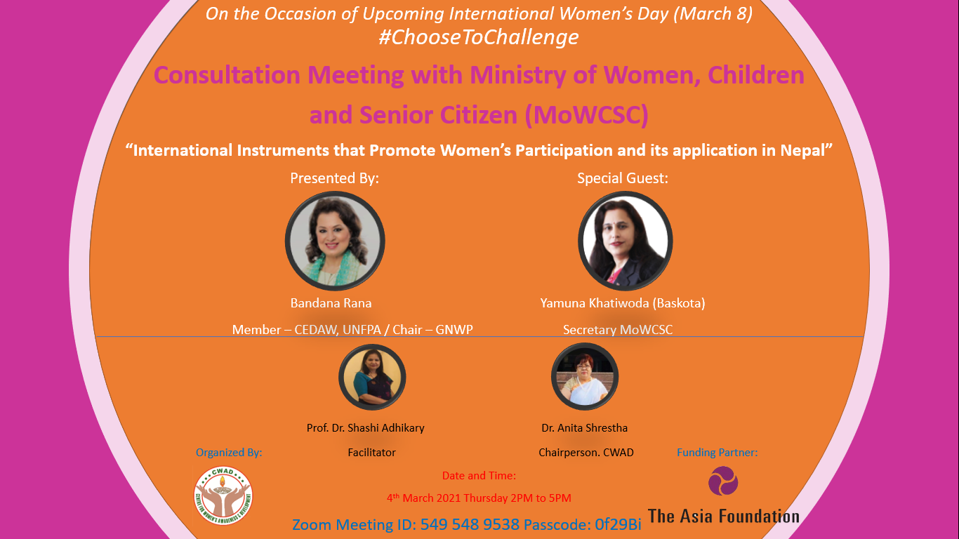 Second Consultation Meeting with Ministry of Women Children and Senior Citizen